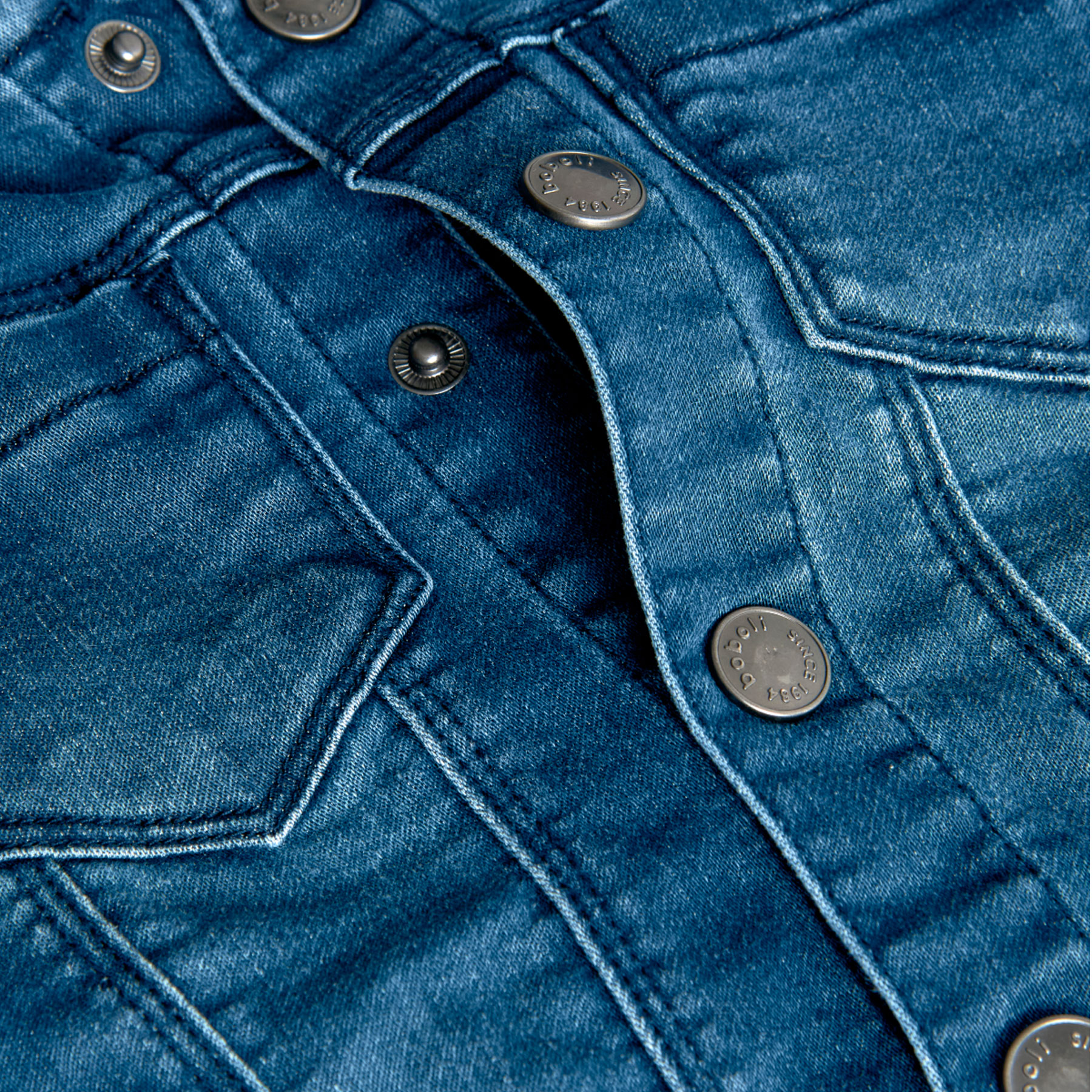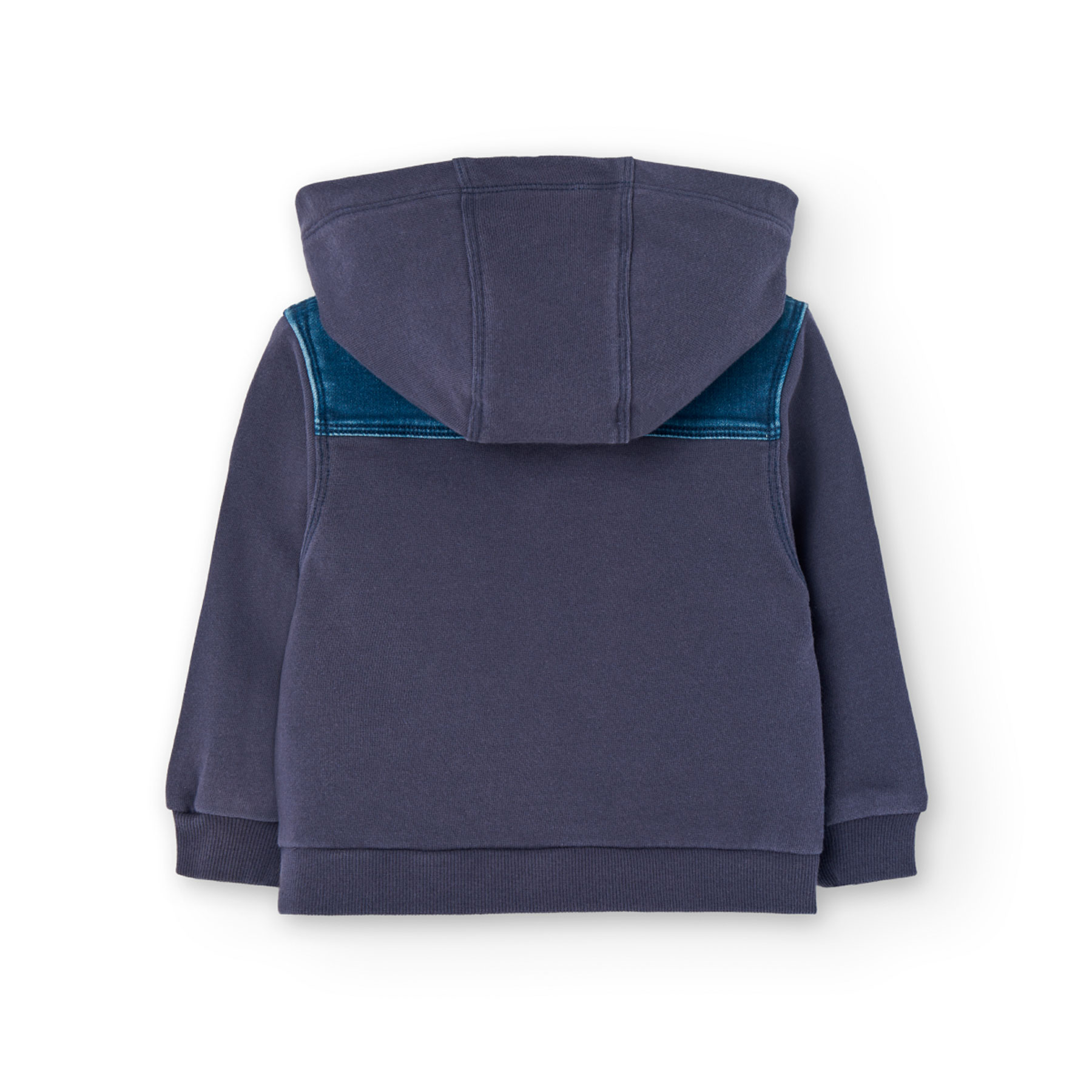 Stylová kombinace denimu a pohodlí – mikina pro malé rebely!, Chlapecká mikina Boboli s přední částí ve stylu džínové bundy a měkkými bavlněnými rukávy. Zapínání na knoflíky, kapuce a boční kapsy zajišťují pohodlí a funkčnost. Ideální jako svrchní vrstva na jarní a letní dny.