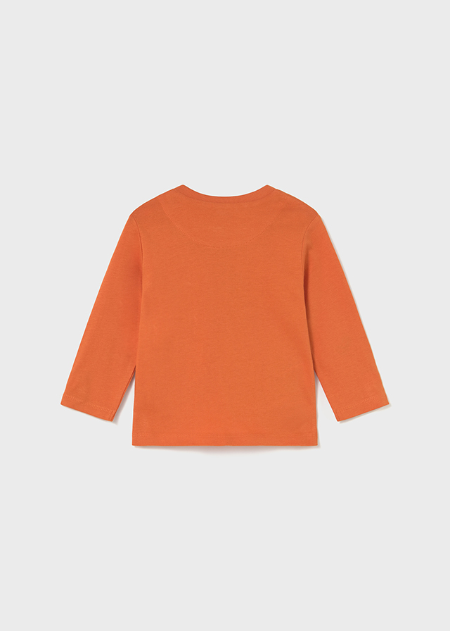 Oranžové tričko s dlouhým rukávem pro kluky od Mayoral s hravým potiskem pejsků na skateboardu. Vyrobeno z příjemné bavlny, ideální pro každodenní nošení ..Chlapecké oranžové tričko s motivem skateboardujících pejsků. Bavlněné tričko Mayoral pro děti 6–18 měsíců – pohodlné a stylové.