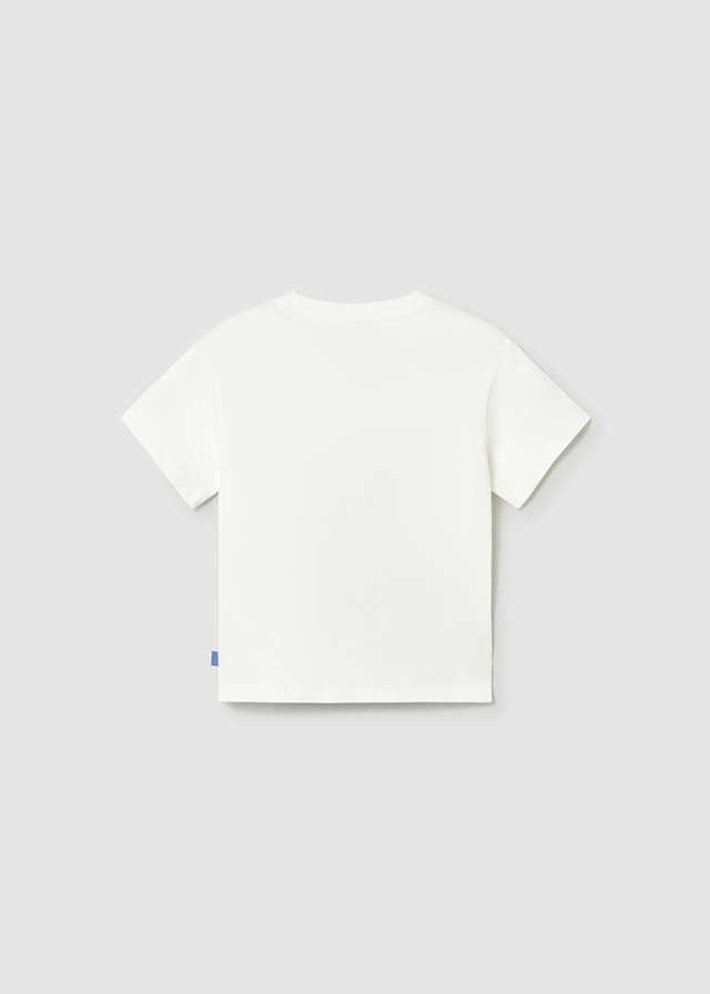 Chlapecké bílé tričko s hrochem v námořnickém stylu. Bílé chlapecké tričko s plastickým hrochem v pruhovaném námořnickém outfitu, krátký rukáv a pohodlný střih ideální na letní dny.