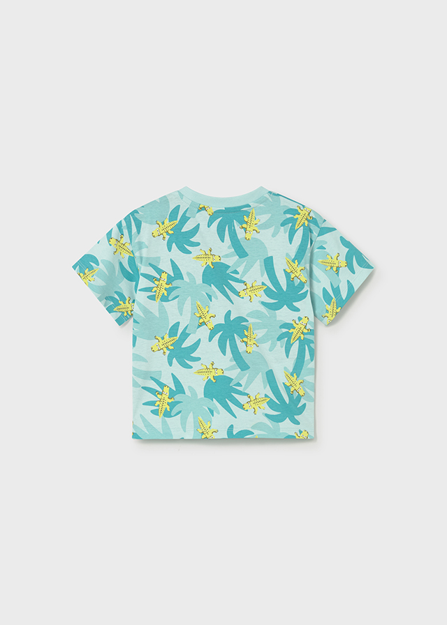 Chlapecké tričko s krokodýly. Chlapecké letní tričko s krátkým rukávem a hravým motivem krokodýlů mezi palmami. Lehký a veselý kousek ideální na horké dny, dovolenou i každodenní nošení.