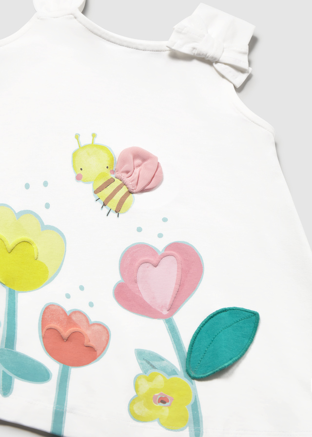 • деталь Dětské dívčí lila šaty bez rukávů s motivem včelky, květin a ozdobnou mašlí MAYORAL