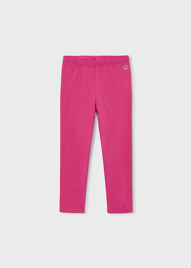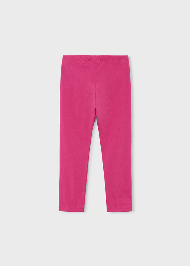 Fuchsiové legíny v plné délce s elastickým pasem. Dívčí legíny v plné délce ve fuchsiové barvě s elastickým pasem. Přiléhavý střih zajišťuje pohodlí při pohybu, ideální na jarní a letní každodenní nošení.